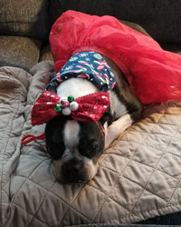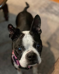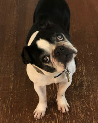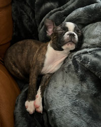 Willa - December 2022 - 4 year old female from MidAmerica Boston Terrier Rescue Willa came to MidAmerica BTR as a breeder release. She was diagnosed with proteinuria which requires a special diet and medication. Due to her monthly expenses, she was placed in our palliative care program and resides in CO. Unfortunately, due to her extreme snoring and snorting her nostrils were also opened and her elongated pallet was repaired. She is doing great now and sleeping much better. So are the humans in the house.