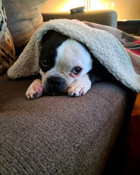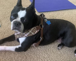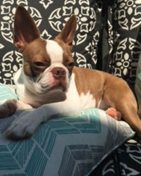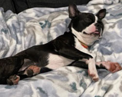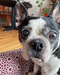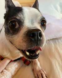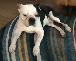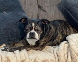 Penny - November 2022 - 8 year old female from MidAmerica Boston Terrier Rescue Penny came to MidAmerican BTR when her owner became ill. She arrived with a grade 3 heart murmur and needing a dental with 7 extractions. She was also put on heart medication. Penny is doing well. She shows no signs of heart distress. We were lucky to find a family that was open to an adult Boston with heart disease. Penny was adopted to a family in Missouri. Relaxing and enjoying her new home as an only pet for her new family. Another happy ending!