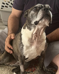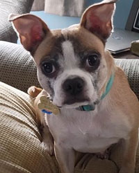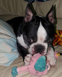 Lala - July 2022 - 12 week old female from Boston Terrier Rescue of East Tennessee Tiny, sweet, 3 pound LaLa was born with a persistent right aortic arch which has created a constricting band around her esophagus. Once she was past the nursing on mom stage, LaLa started to show symptoms of being unable to hold anything down and it had constricted even more - so much that LaLa could not even get water down and was slowly starving to death. Her desperate owners contacted BTRET. She was in such horrific shape and declining so rapidly, BTRRET had the former owners rush LaLa to the ER at the University of Tennessee Vet School Tuesday night. LaLa immediately received IV fluids and meds and stayed in ICU overnight. This morning as soon as the imaging confirmed that this was life-threatening, Lala was rushed into surgery. Lala’s surgery went well and the surgeon is very pleased! 7-21 Lala’s chest tube is out post-surgery and she's been holding down her meals. Serious progress! 7-23 Great news! LaLa was released today and is settling in with her foster family. She will most likely be a megaesophagus baby all her life which will require lifelong maintenance and careful feedings. UPDATE - Lala had a successful surgery for Persistent aortic arch which is a band of tissue wrapped around her esophagus with its origin in the aortic arch. She does well if elevated after eating and eats standing up with her food bowl on a stool because she has some megaesophagus as a result, but she has done well and has recently been adopted. ![]() Lanie - July 2022 - 9 year old female from MidAmerica Boston Terrier Rescue Lanie is a Boston-Pug mix that was picked up as a stray. No one came to claim her, and she was turned over to MABTR due to space and her age. At her vet check she had bloodwork done, her ears checked and was scheduled for a dental cleaning. Lanie had three teeth extracted during her dental. She wags her tail whenever anyone talks to her & loves toys. ALL TOYS! And all animals too. Lanie has found her forever home in Minnesota where she lives with another dog. UPDATE - Lanie is an 8 year old female Boston mix that was picked up as a stray. When no one came to claim her, she was turned over to MABTR due to space and age. We took her into the vet to have her ears checked, bloodwork done (due to age) and a dental appointment in which she had 3 extractions. Lanie has found her forever home in Minnesota where she lives with her new dog friend.