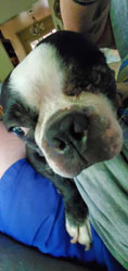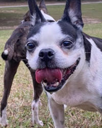 Daisy Dixie - June 2022 - 8 year old female from Boston Terrier Rescue of East Tennessee Ever since Daisy Dixie came into rescue and was in foster care, she showed unusual breathing patterns. She was panting for no apparent reason, like waking up. Daisy Dixie also had eye issues. She was sent to an internal medicine specialist, but no cause was found for the breathing issues. For the eyes, contact lenses were placed to prolong non-healing corneal abrasions. UPDATE - No cause has been found for Daisy Dixie’s breathing issues, but apparently, it's not causing problems. It just scares her foster parents. Dixie Daisy was diagnosed with Cushings at University of Georgia Vet School on Sept. 15th. With help from the rescue, she was able to see a holistic vet. She was prescribed Chinese herbs, a diet of only fish or turkey as meat source, special adrenal support supplements and flax seed oil with lignans along with acupuncture every two to three weeks. She is very social with the other dogs and is living her best life crate free on 40 acres. She is very active and alert. Dixie Daisy will remain in foster care. ![]() Charleston Charlie - June 2022 - 9 year old male from Boston Terrier Rescue of East Tennessee Charleston Charlie came into rescue as a pull from an Atlanta Shelter who said he was 14 year old, but later evaluation resulted in more like 9. He had a large mass on his right rear leg which was removed, it was incompletely excised. Pathology revealed it was a low-grade mast cell tumor (cancerous). Charlie has since been adopted, and is in a new loving forever home.