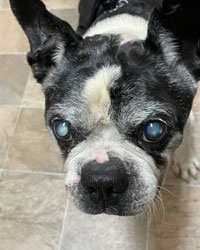 Mario Rio - December 2022 - 12 year old male from Boston Terrier Rescue of East Tennesee Mario Rio is a deaf and Blind senior. He was attacked by another dog in his foster home. He was immediately removed from the home. He had massive soft tissue trauma to his front legs, ears, and other areas. He required surgery, drainage tubes, stiches, and antibiotics. Mario Rio will make a full recovery and will remain a permanent foster with BTRETN living his life to the fullest.