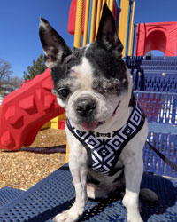 Michael Wayne - September 2022 - 5 year old male from Boston Terrier Rescue of East Tennessee Five year old, Michael, came into rescue as an owner surrender. He had a cherry eye and a non functioning left eye all in one. It was decided to enucleate the left eye because he had already lost use of that eye. Removing a non functioning eye heads off serious eye issues in the future. Michael is recovering well. UPDATE: Our sweet Michael Wayne needs a "nose job". No, it’s not cosmetic surgery. He has brachycephalic airway syndrome. It means that Michael now struggles to breathe. Tthe surgery will reduce the soft palate and open everything up including his nostrils. What an Amazing permanent outcome for Michael! He is still in foster care. ![]() Decoster - August 2022 - 8 year old male from MidAmerican Boston Terrier Rescue Decoster came into our rescue when his owner moved to care for his ill mother but could not take him at his new location. He needed dental cleaning. Due to his age, we did bloodwork to make sure all was ok to continue. Decoster is doing well after his procedure and having 6 teeth pulled. Decoster with an easy going attitude & lovable nature has found his new forever home in Colorado. ![]() Gemma - August 2022 - 3 year old female from MidAmerican Boston Terrier Rescue Gemma came in to rescue as a breeder release. This 3-year-old needed a dental cleaning along with her spay and luckily, she did not lose any teeth. She is very timid and is working on building confidence. Gemma recovered well and moved into her forever home in Arvada, CO where she continues to work on building her confidence. She loves to play outside & relax in the shade. ![]() Allie - August 2022 - 2 year old female from MidAmerican Boston Terrier Rescue Allie was released from a breeder at the age of two. She needed a dental cleaning and a spay. She had no extractions and is recovering well. She is enjoying life outside of a cage and has moved into her forever home in CO. ![]() Seba - August 2022 - 10 year old female from MidAmerican Boston Terrier Rescue Seba came into rescue when her owner moved into an assisted living home that did not take pets. Seba really needed a dental cleaning and a cyst removed from the top of her head. The rescue also did bloodwork and a urine analysis due to her age. Seba is recovering well. She was lucky to have had only one tooth pulled and the cyst on her head no longer bleeds when bumped. Seba has found her forever home in St. Louis. She loves to snuggle with her human, run and jump up and go for walks. ![]()