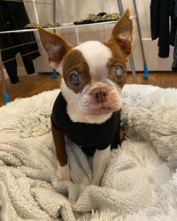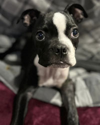 Jeremiah - November 2022 - 6 month old male from MidAmerica Boston Terrier Rescue Sweet little Jeremiah is only 6 months old. He came into Arizona Boston Terrier Rescue from the Arizona Humane Society as a medical intake with a complex prolapsed colon. He needed a temporary purse string suture replaced with a colopexy. His procedure was completed by a specialist surgeon along with a necessary tail amputation and neuter. Subsequently, after the purse string was removed his colon prolapsed again. At this time Jeremiah is back at the specialist center to see what went wrong. In the consultation with his surgeon, we were told that Jeremiah’s complications fall in the 3% colopexy failure. He was left with Dr. Soderstrom for evaluation. Dr. Soderstrom said that his time and the hospital will be pro Bono this time around and Jeremiah will continue in foster care. UPDATE - Not long after the second surgery, the colopexy was redone again and everything has remained in place. Jeremiah has been through a lot and so has his foster family. He will be adopted by his fosters in February! Yay, for you Jeremiah!!