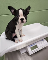 Hank - November 2022 - 4 month old male from MidAmerica Boston Terrier Rescue Hank was a breeder release when he was not gaining weight like the other puppies. When he arrived, he was very thin. It was discovered that Hank could not breath out of his nose at all! And when he was eating, he was not breathing. He walked around with his mouth open all the time. So, at 19 weeks Hank had surgery to have his nostrils opened so he could breathe through his nose. Hank is now breathing with his mouth closed and through his nose. UPDATE - Hank found his forever home with a family in Colorado. He is loving life and playing hard with his four legged buddy now that he can breathe with no struggle.