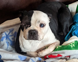 Rocky - March 2022 - 9 year old male from Arizona Boston Terrier Rescue Rocky was a shelter intake coming to AZBTR after a 72 hour hold. During his intake the rescue was told that he had vomited up twigs and a "cotton ball". He was immediately seen by the rescue’s vet and upon x-ray determined he had a stone with a probable blockage. Rocky immediately went into ER treatment to remove the rock, candy wrappers etc. Blockages are a very severe medical issue and need to be treated as such. Arizona Boston Terrier Rescue ensured Rocky got that treatment and enables them to move forward with much needed dental and eye care. UPDATE - Rocky was a foster failure and is a very happy boy who loves his daddy (of course mommy did all the nursing, LOL). He is living the life now! ![]() Ruby - March 2022 - 8 year old female from Alabama Boston Terrier Rescue Ruby Xena came into rescue at approximately 8-9 years of age having multiple medical issues. Along with needing her spaying and extensive dental, she had a mass and a hernia which needed to be removed and repaired. Alabama Boston Terrier Rescue will ensure that she gets all the care she needs and off to a loving fur ever home. You can follow Ruby Zena’s story further on the page for Alabama Boston Terrier Rescue. Boston Terrier Rescue of Western Washington wishes Ruby Xena a speedy recovery.. ![]() Peachie - February 2022 - 4 year old female from Boston Terrier Rescue of East Tennessee Peachie Pie came into rescue as a sweet loving 4 year old. She needed to be spayed but also needed to have a dental requiring 3 teeth be extracted. Boston Terrier Rescue of Western Washington was able to help with some funding for the extractions. Boston Terrier Rescue of Western Washington hopes she now will have a pain free mouth. Peachie Pie’s foster family fell so in love with her they adopted her. This is well known to rescue as a FOSTER FAILURE. Boston Terrier Rescue of Western Washington is so happy she is in her new loving home. ![]() Violet - February 2022 - 6 year old female from MidAmerican Boston Terrier Rescue Violet was released to MABTR by an Amish Breeder. No mention of her condition. She arrived with a bulging eye that had no vision, her teeth were horrific needing dental work and she had a mammary gland tumor that needed to be removed along with being spayed. Violet is getting the treatment and care she needs to she can live a pain free healthy life. UPDATE - Violet is now living in Missouri with her new family and a new four legged best friend.